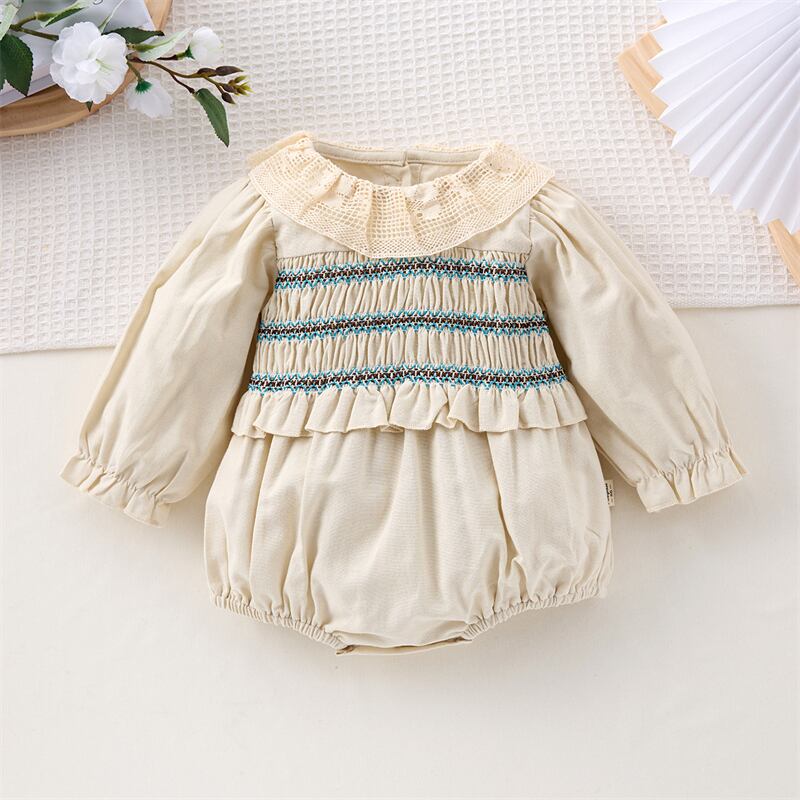 【海外からの取り寄せ】2025春新作 ベビー服 女の子 レース ラッフルカラー 長袖 ロンパース 柔らか カバーオール 子供服 #[ckd1094398_17800]【送料込み】【250524】