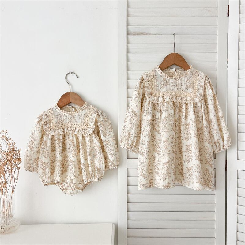 【海外からの取り寄せ】2025春新作 子供服 姉妹服 選べる2タイプ 立ち襟 花柄 ロンパース ワンピース 長袖 可愛い #[ckd1094354_18100]【送料込み】【250524】
