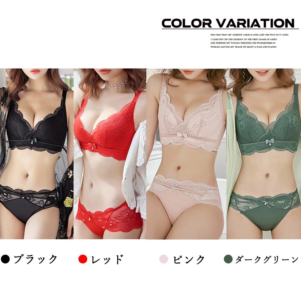 ブラジャー ショーツ 2点セット セクシーランジェリー レース リボン付き ブラ ノンワイヤー 4段ホック