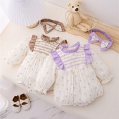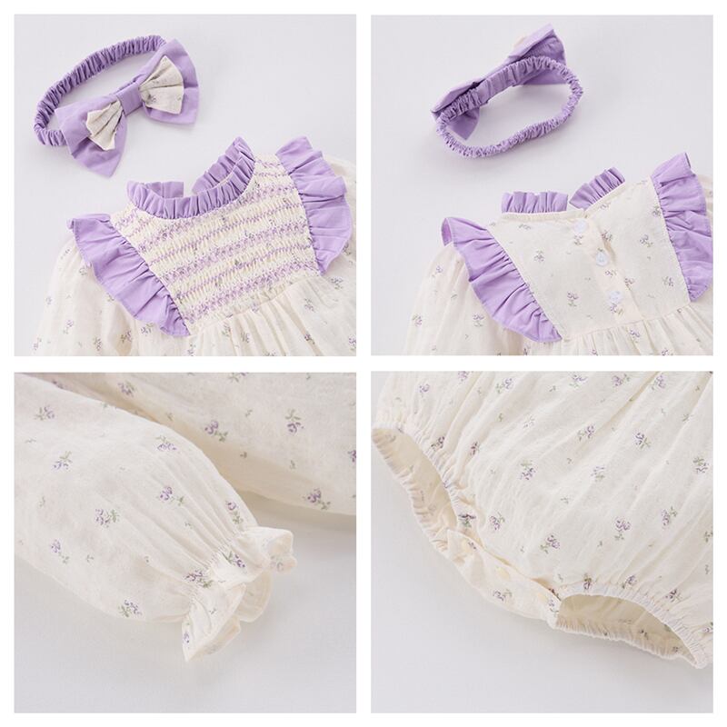 【海外からの取り寄せ】2025秋新作 ベビー服 ヘアバンド付き 女の子 ロンパース 立ち襟 フラッタースリーブ 可愛い 子供服 #[ckd1094411_17500]【送料込み】【250924】