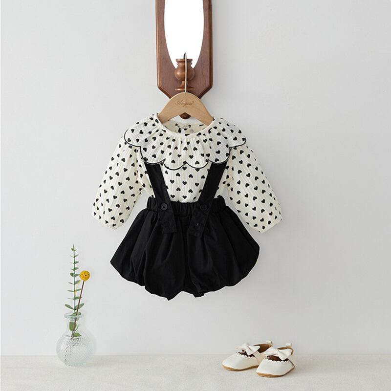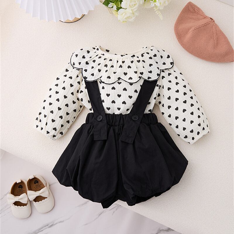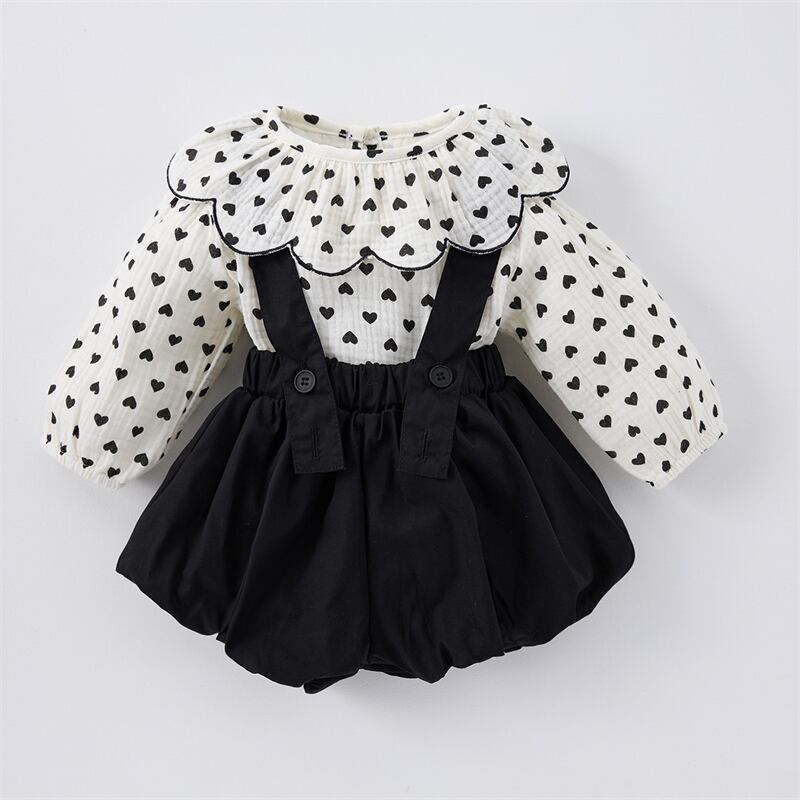 【海外からの取り寄せ】2025秋新作 ベビー服 ハート柄 シャツ サロペットロンパース セットアップ 可愛い おしゃれ 子供服 #[ckd1094407_18300]【送料込み】【251111】