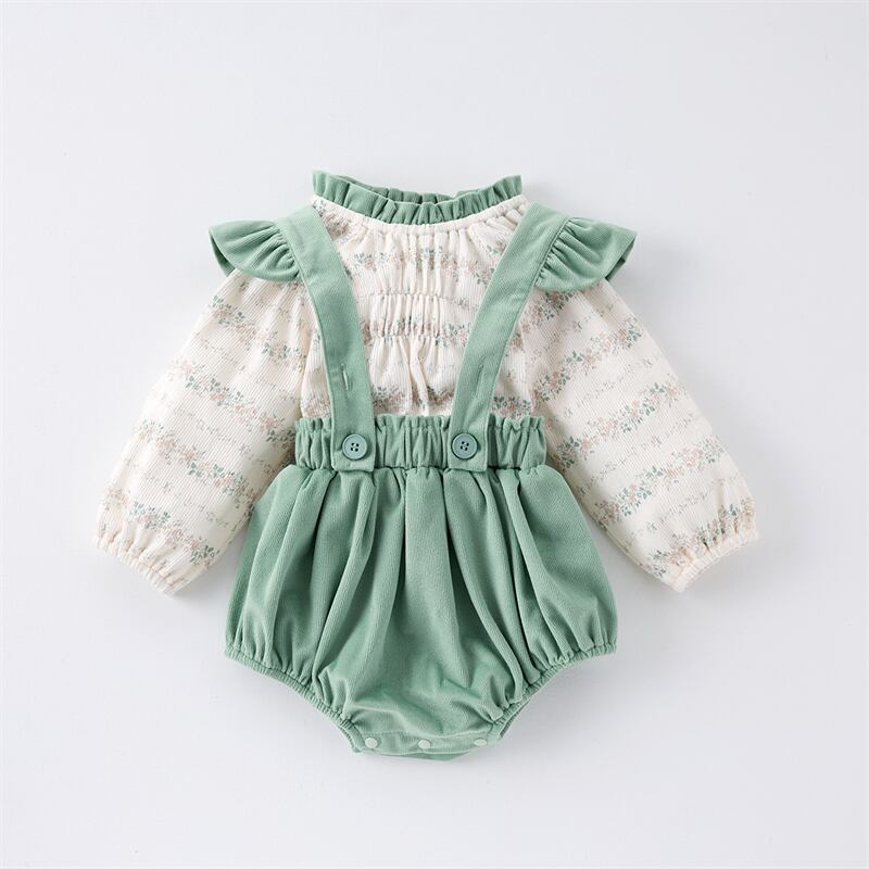 【海外からの取り寄せ】2025秋新作 ベビー服 立ち襟Tシャツ サロペット ロンパース セットアップ 可愛い おしゃれ 子供服 #[ckd1094405_21300]【送料込み】【250913】