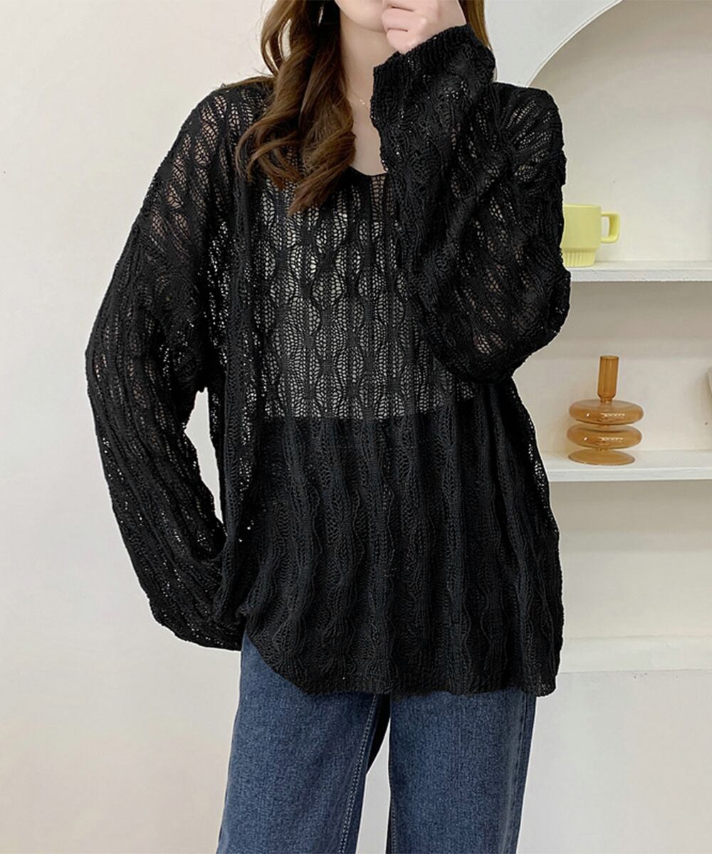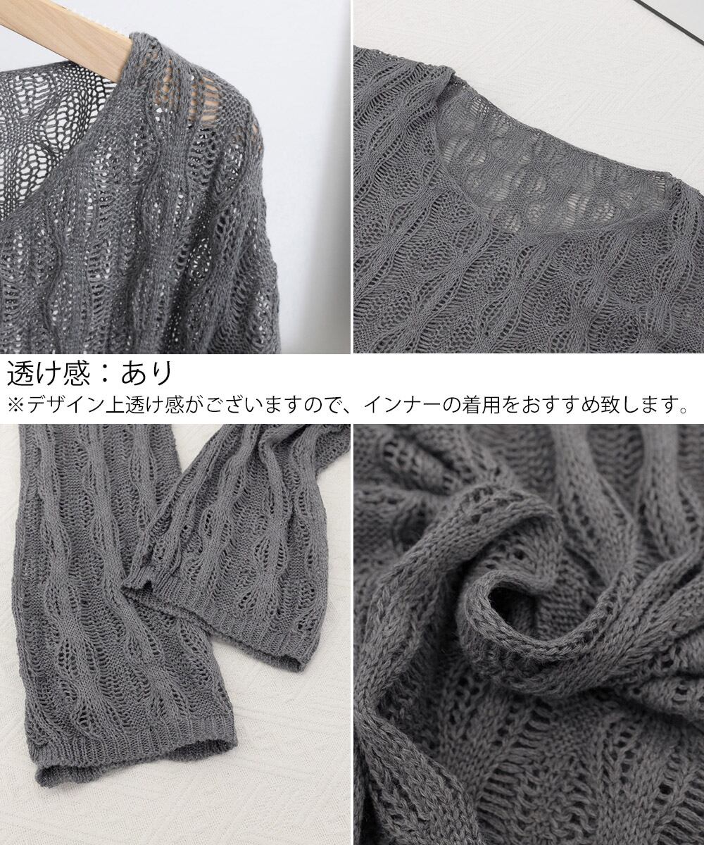 【日本倉庫からの発送】 メッシュニット 透かし編みトップス 長袖 #[83WANGY-004_15600]【送料込み】【250529】