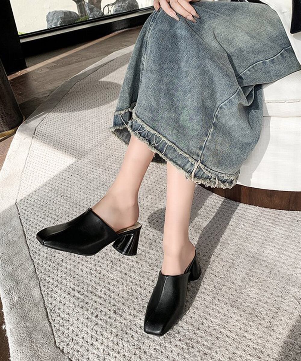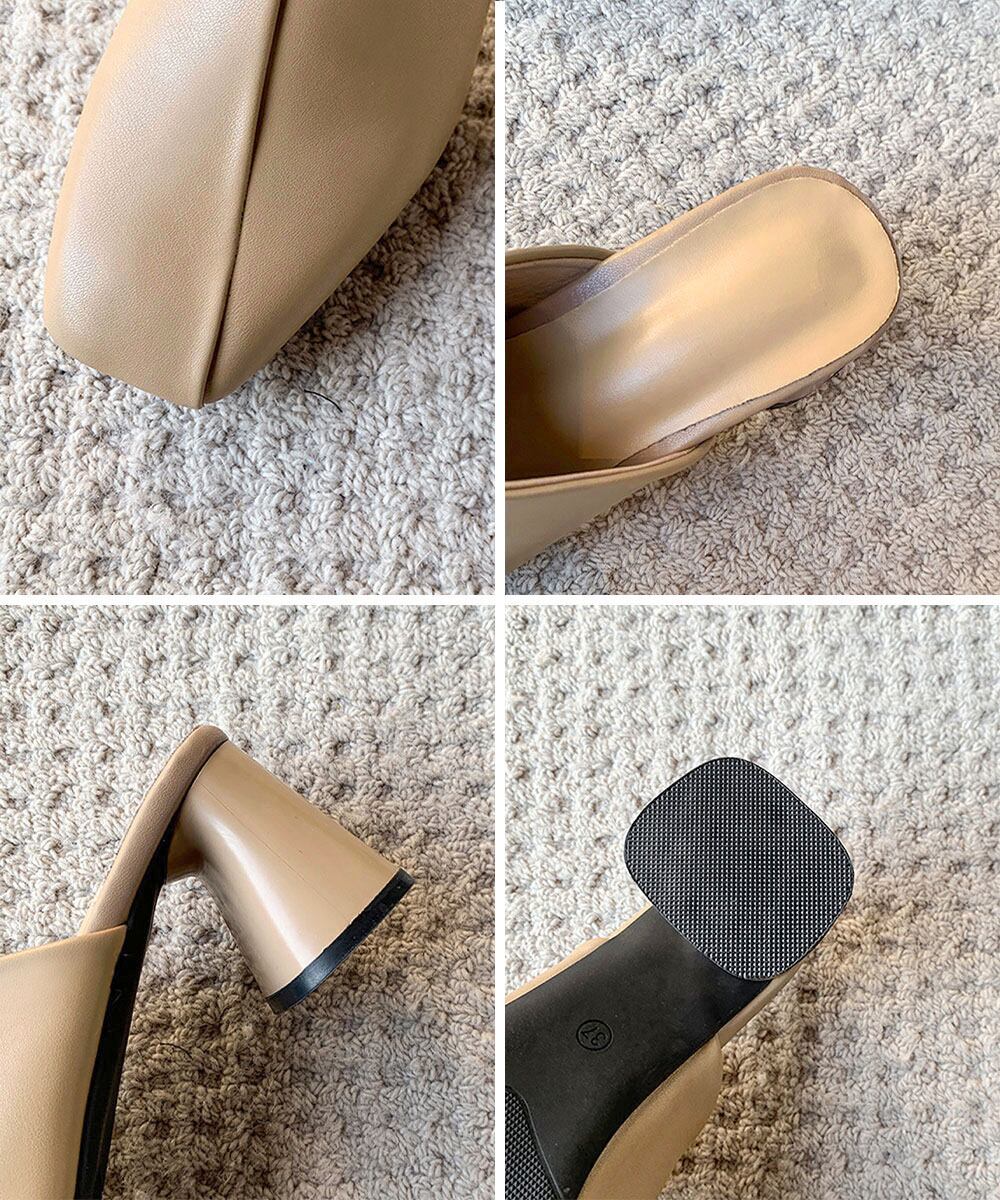 【日本倉庫からの発送】 ミュールパンプス 太ヒール靴スクエアトゥ #[83RAJL-018_28300]【送料込み】【250606】