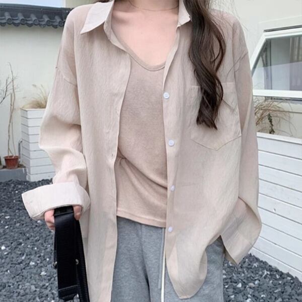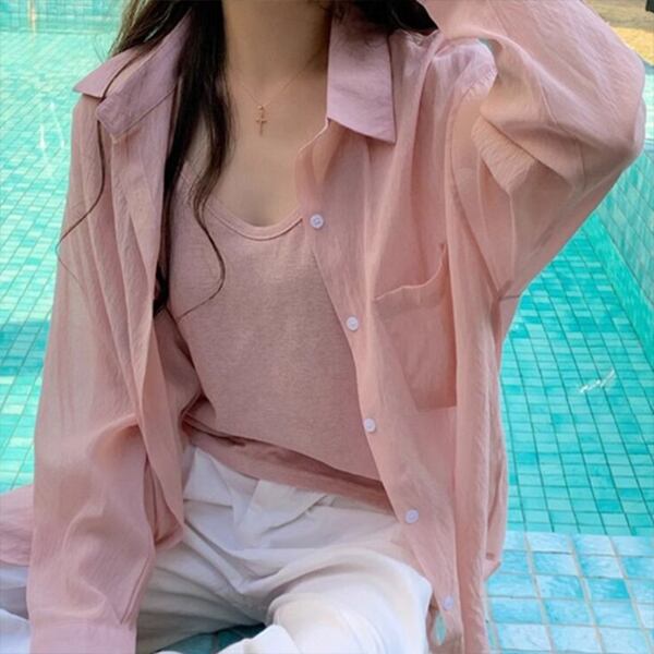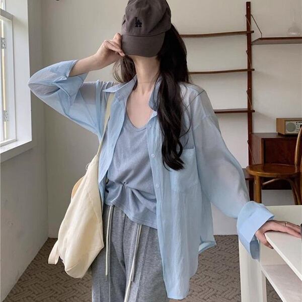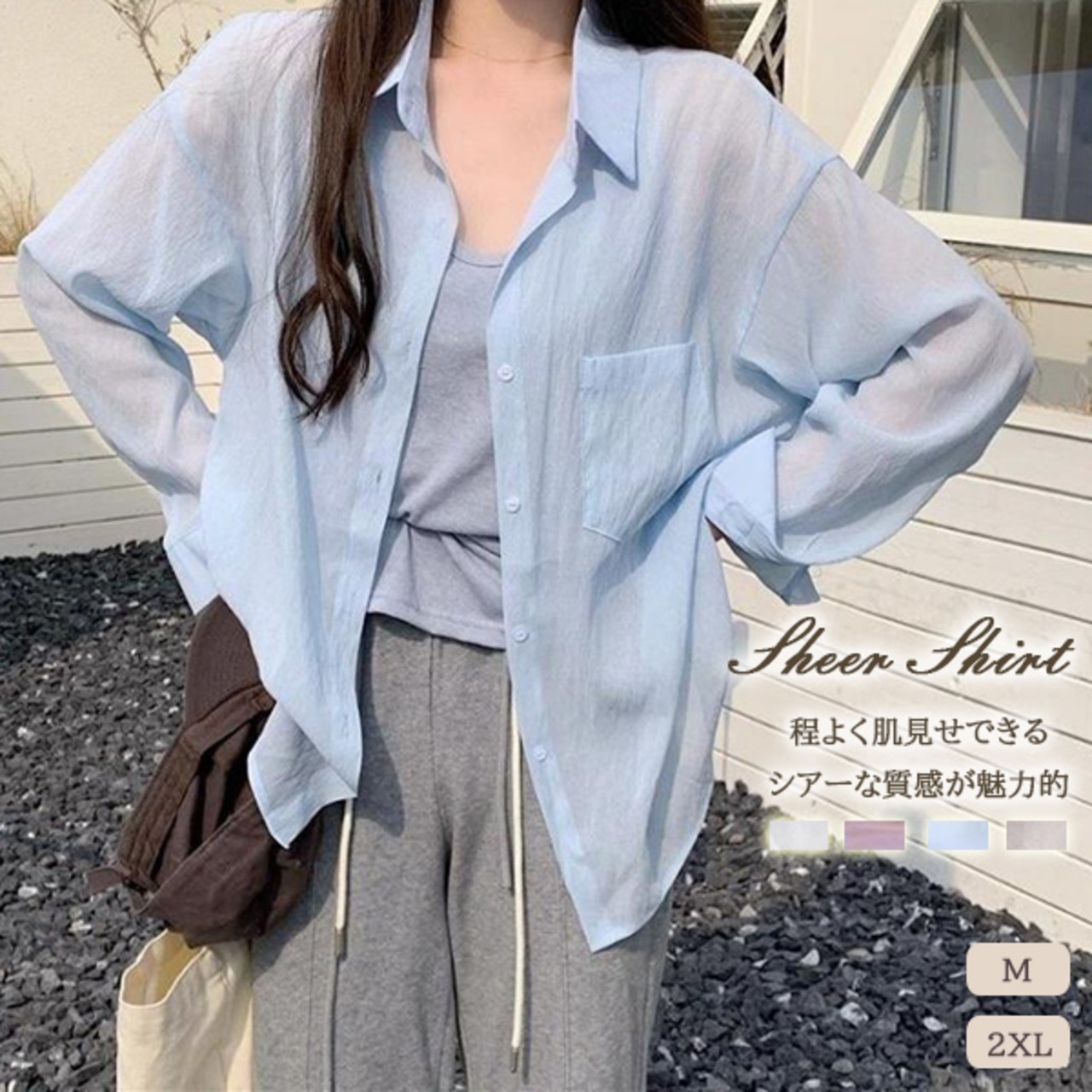 【海外からの取り寄せ】 2025新作 シアーシャツ 羽織り 透け感 無地 ゆったり 体系カバー 薄手 襟 トップス #[shirt451_10800]【送料込み】【250606】