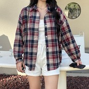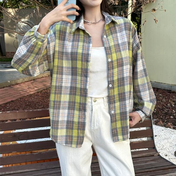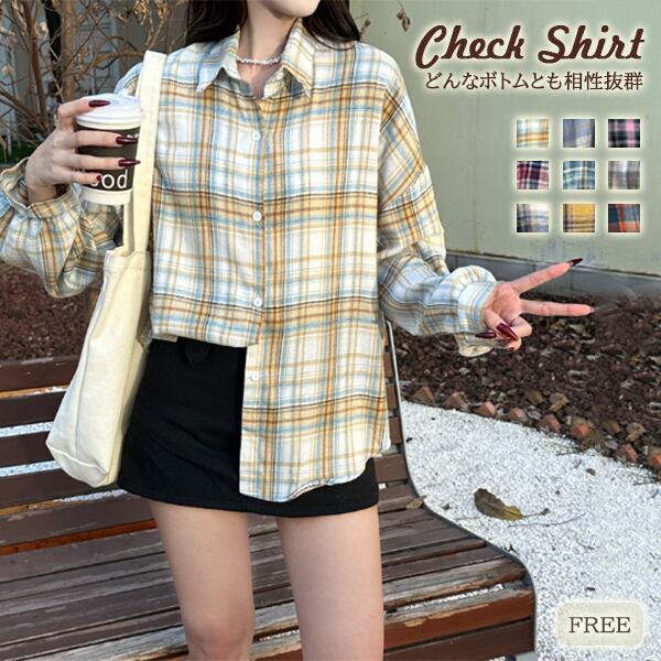 【海外からの取り寄せ】 2025新作 チェック柄シャツ ブラウス トップス ベーシック カジュアル 上着 襟付き 長袖 #[shirt450_9800]【送料込み】【250711】