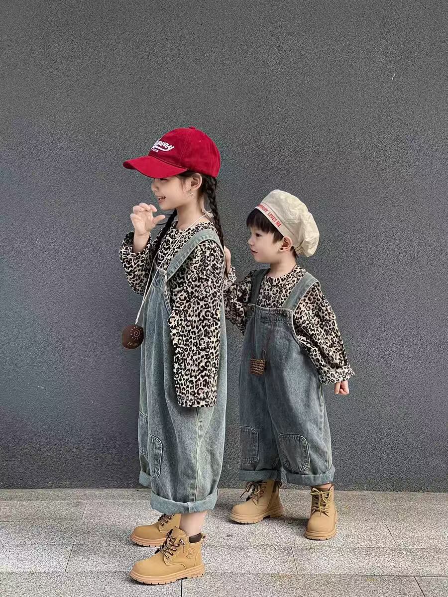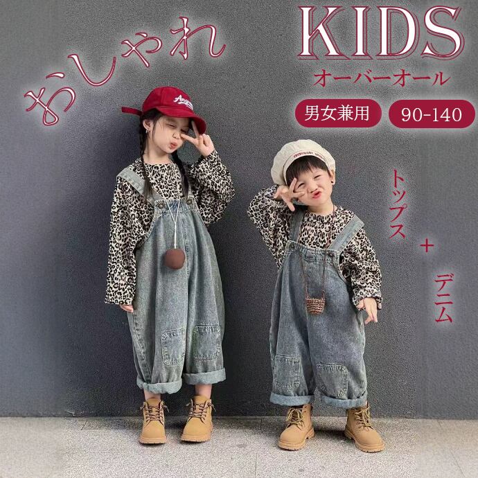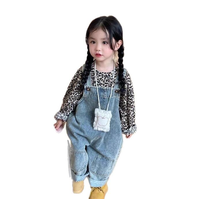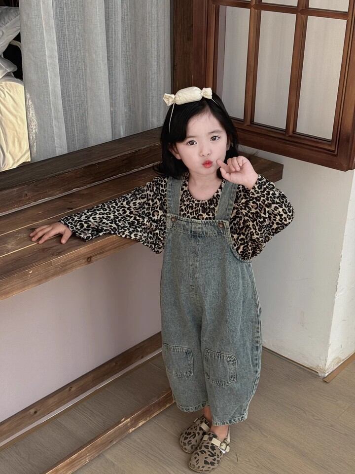 【海外からの取り寄せ】2025春夏新作 韓国風 子供服 可愛いキッズ サロペット オーバーオール デニム ジーンズ ヒョウ柄 トップス #[kids822_14800]【送料込み】【250508】