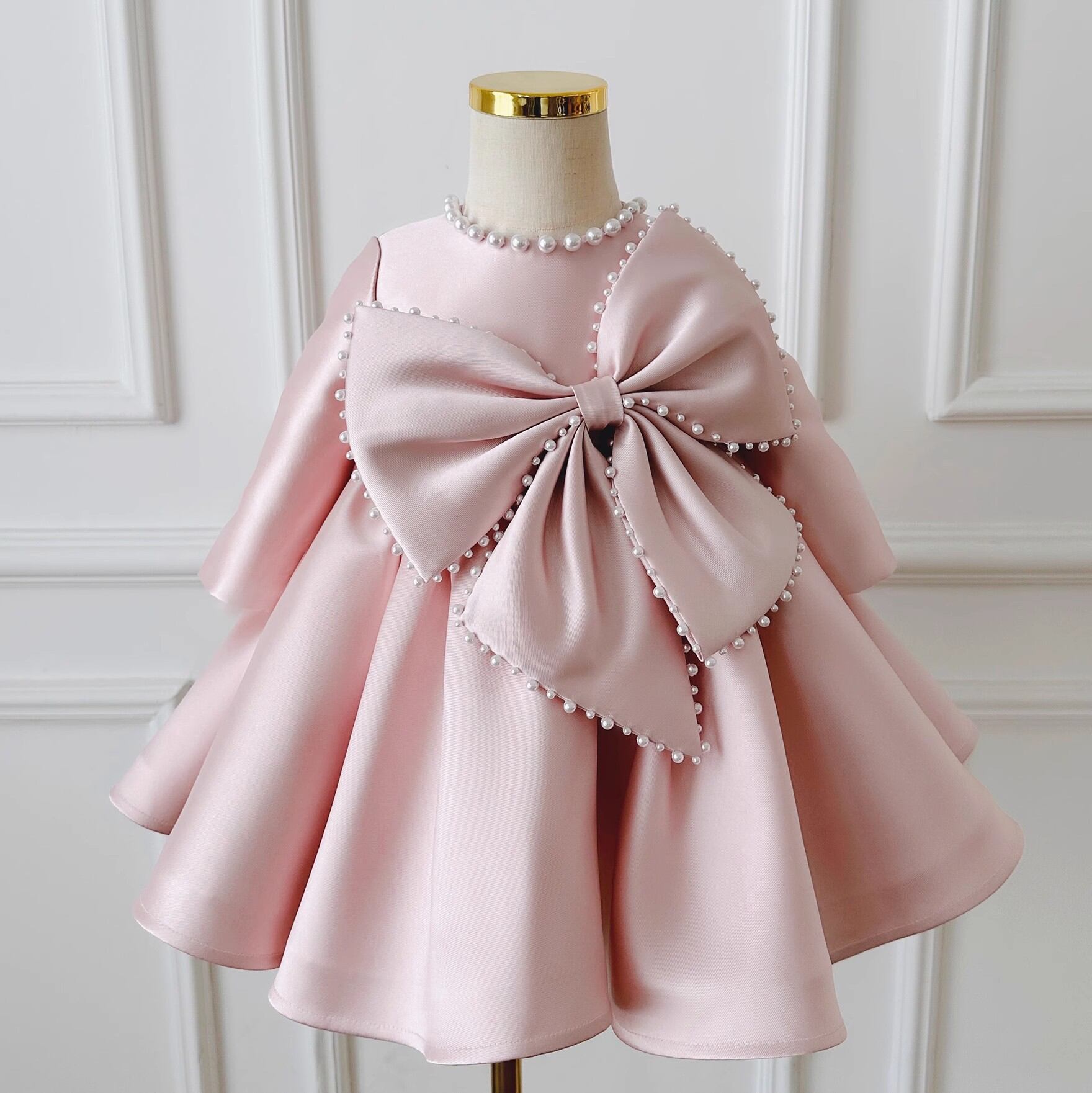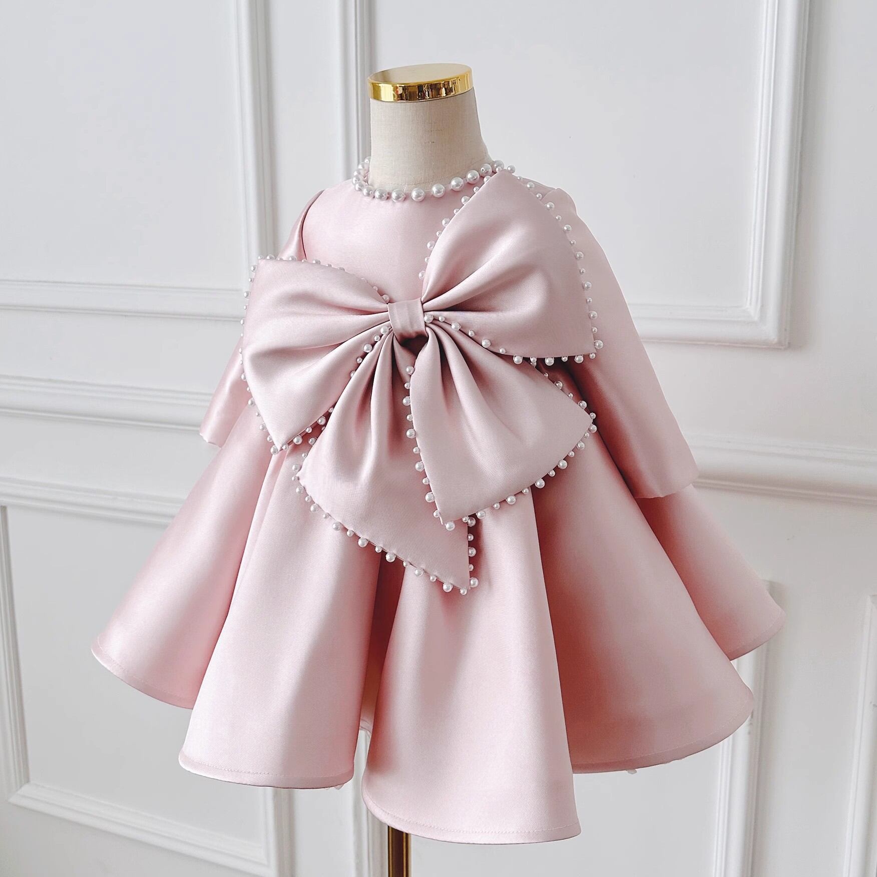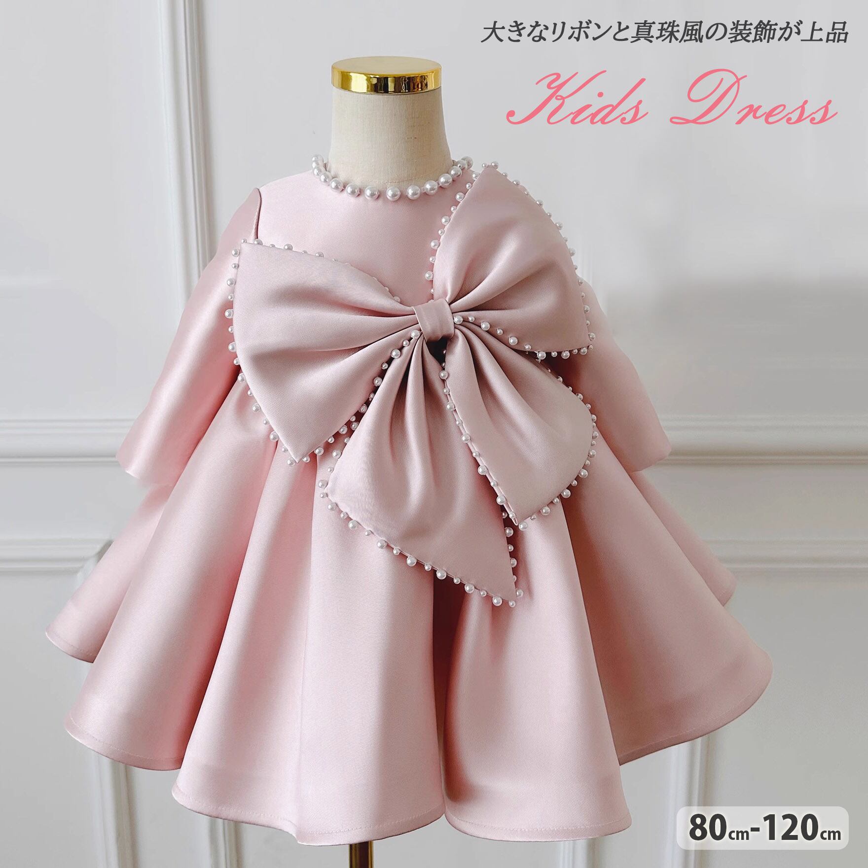 大きなリボンと真珠風の装飾が上品 キッズドレス