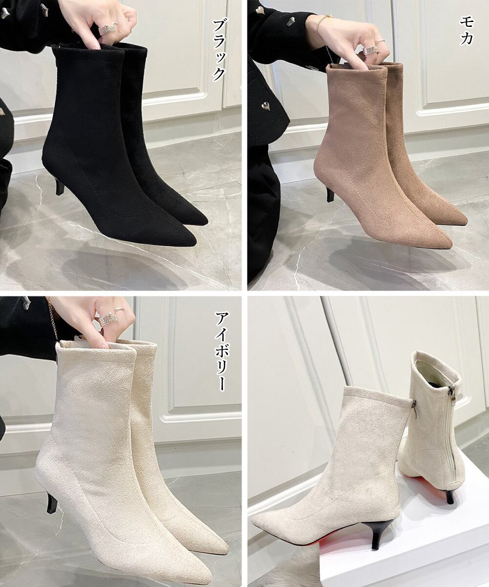 韓国上品ローヒールブーツ ポインテッドトゥ靴 ピンヒールシューズ 秋冬 疲れない ミドルブーツ 歩きやすい バックジップ