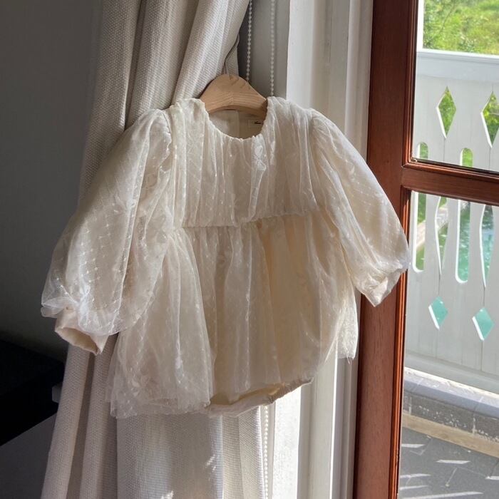 2024春新作 ベビー服 女の子 ロンパース パフスリーブ チュール カバーオール 可愛い おしゃれ↓