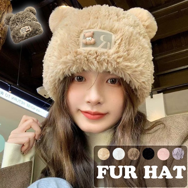 【海外からの取り寄せ】2025新作 レディース 帽子 クマの耳が付き もこもこ ふわふわ フェイクファー 保温 小顔効果 猫耳 #[hat461_4800]【送料込み】【251128】