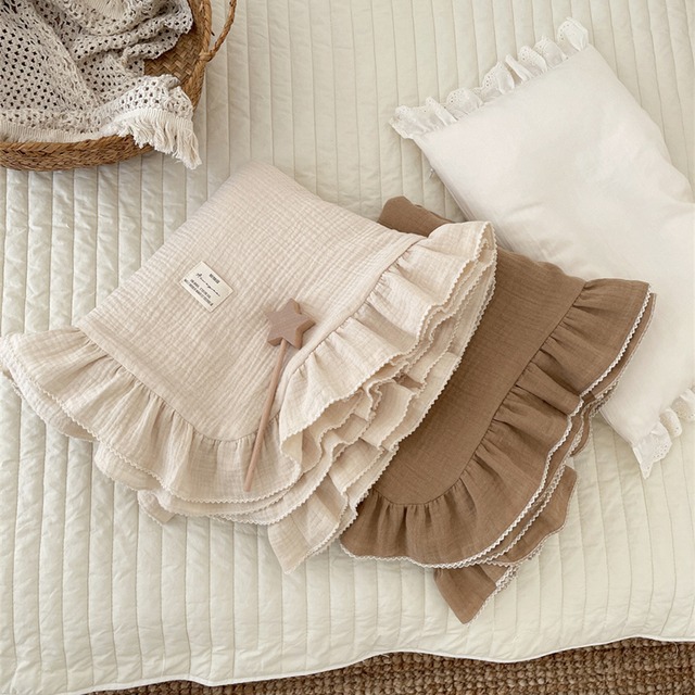 【海外からの取り寄せ】ins 肌ざわりの良い 綿 4重ガーゼ フリル バスタオル キッズ ベビー 新生児 出産祝い 毛布 4色 #[ckd1094997_30500]【送料込み】【251008】