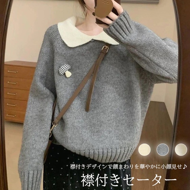 【海外からの取り寄せ】 2025新作 ポロ襟 ニット セーター プルオーバー トップス 可愛い 小顔 細見え #[tops734_23800]【送料込み】【251128】
